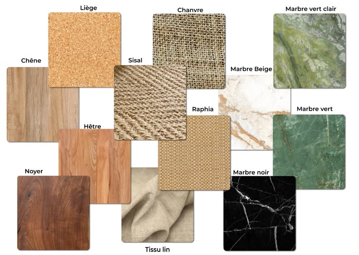 Notre force repose sur une large palette de matériaux nobles, certifiés et responsables, sélectionnés pour leur qualité et leur faible impact environnemental.